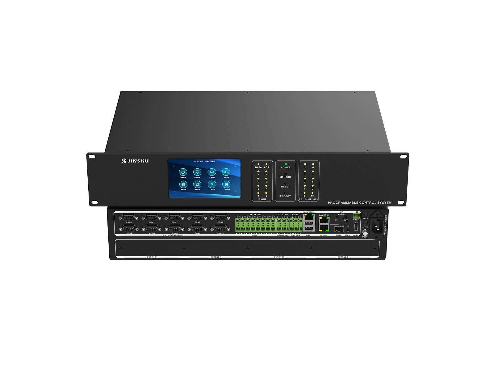 金枢科技以智能中央控制系统系统为核心,结合周边IOT物联控制产品、视频处理产品和扩声系统推出的展厅智能化控制与扩声系统解决方案。为用户提供IOS、Android、Windows和系统触控屏等多种平台,实现对整个展厅的受控设备、LED屏、电视、灯光、投影机、液晶拼接、电子沙盘、电脑、人机互动视频音频设备等智能控制。同时对展厅环境、空调、窗帘、电动门、电动显示屏进行控制。